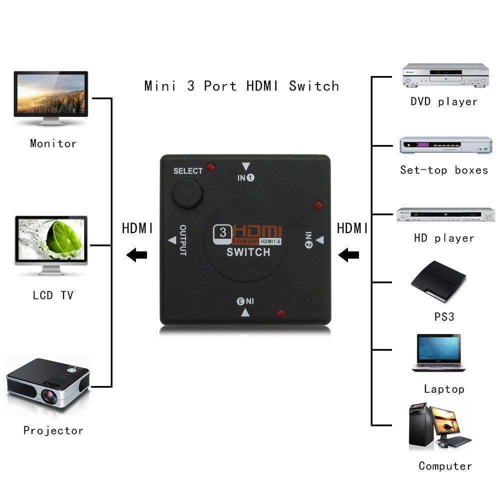 Enhance your home entertainment setup with our 3 Port HDMI Splitter 1080P Multi Switch Switcher Hub Box. This compact and versatile device allows you to connect multiple HDMI sources to a single display, making it ideal for home theatres, gaming setups, and conference rooms. Say goodbye to the hassle of constantly swapping cables and enjoy a seamless multimedia experience.