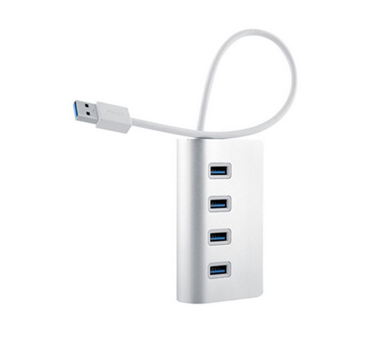 USB 3.0 Premium 4 Port Aluminium USB Hub adds four additional USB 3.0 ports to your Mac (or PC), allowing you to connect USB devices such as digital cameras, phones, external hard drives, flash drives, and printers to one convenient place. With a slim, strip-shape design, it saves you precious desktop space. Designed to match Macs, iMac, and MacBook Its metallic silver finish and Apple-styled curved edge with shielded white cable complement Apple computers and products.