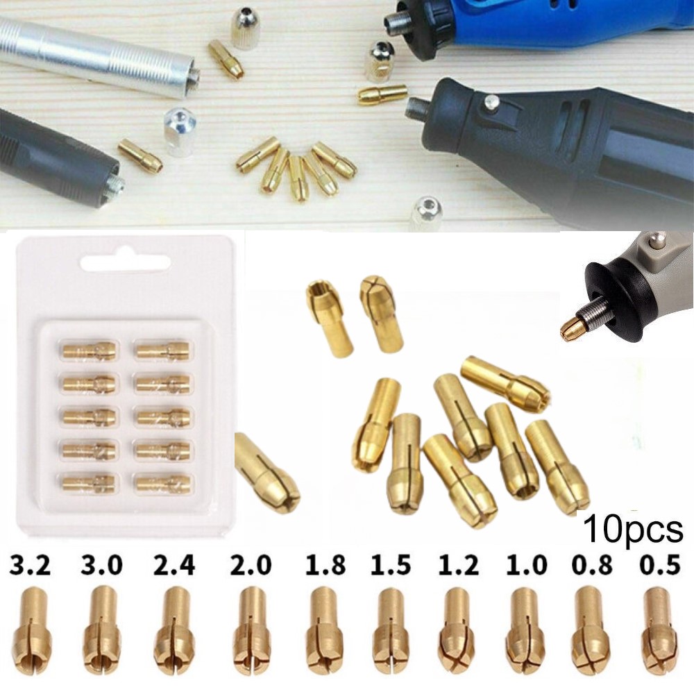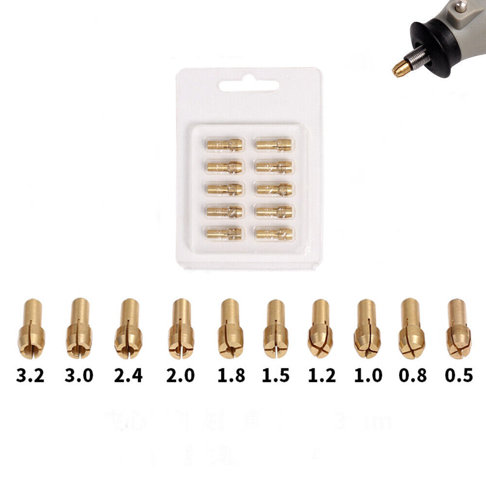 10pcs Set Brass Drill Chuck Collet Bit 0.5mm-3.2mm For Dremel Rotary Tools