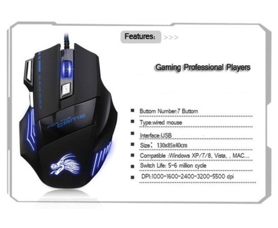 - 1 x 5500 DPI 7 BUTTONS USB LED OPTICAL WIRED GAMING GAME MOUSE MICE