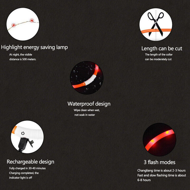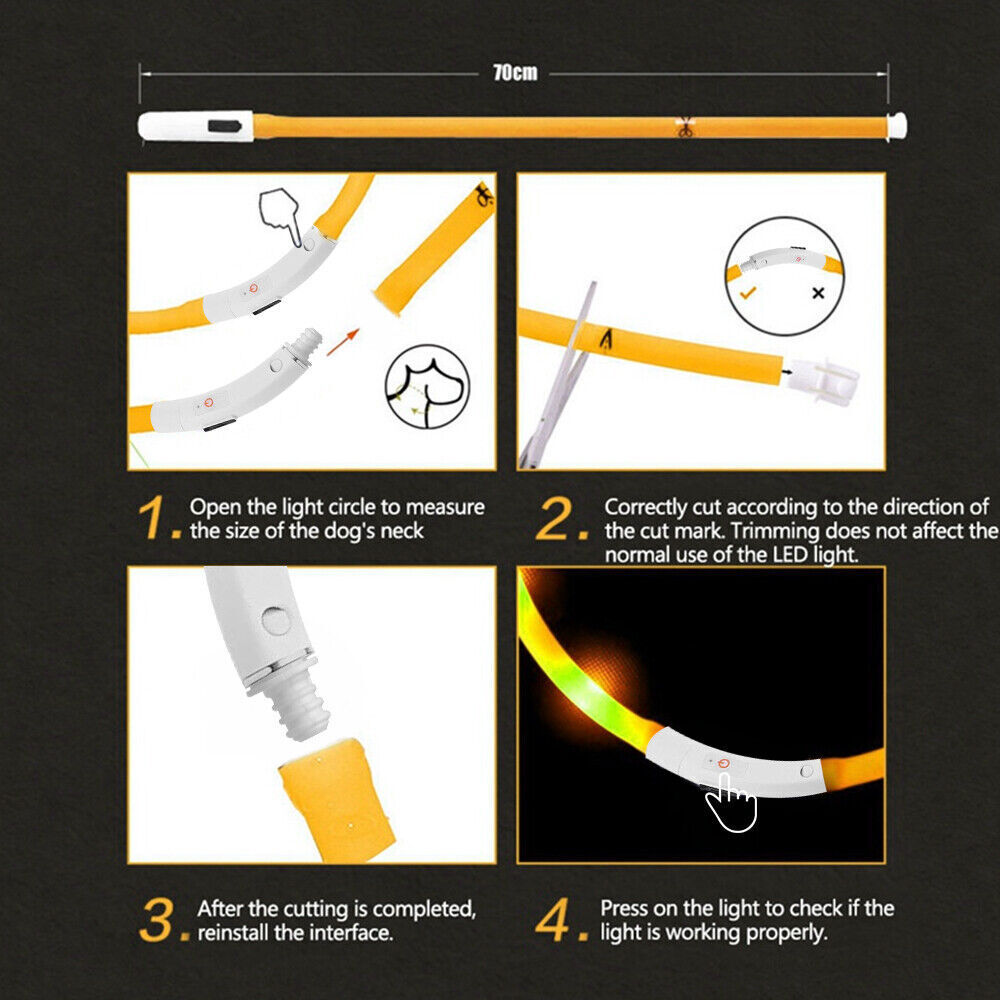 Introducing our innovative Pet Glow Collar—the ultimate accessory for your furry companion! Crafted with style, this neck band combines functionality with flair to ensure your pet stands out day or night. Featuring a sleek and adjustable design, our Pet Collar is suitable for pets of all sizes. Made from durable, lightweight materials, it guarantees comfort for your pet during all their adventures. But what truly sets this collar apart is its luminous technology. With just a push of a button, vibrant LED lights embedded within the collar illuminate, providing visibility in low-light conditions.